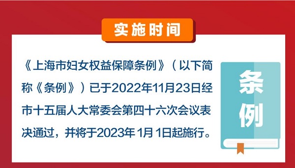 市妇联介绍,11月23日,《上海市妇女权益保障条例》经市十五届人大常委会第四十六次会议表决通过。