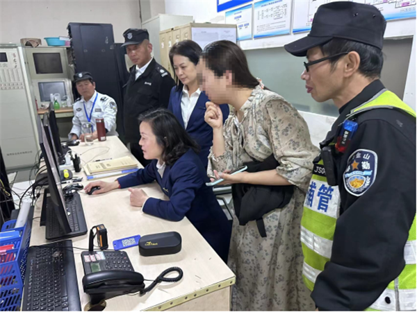 同时,通过视频监控系统,追踪孩子的行踪,最终,在公安、联勤工作站、志愿者等人员的联动下,通过“人防”和“技防”相结合,在金山嘴渔村景区附近发现了孩子,将其安全带回到家长身边。
