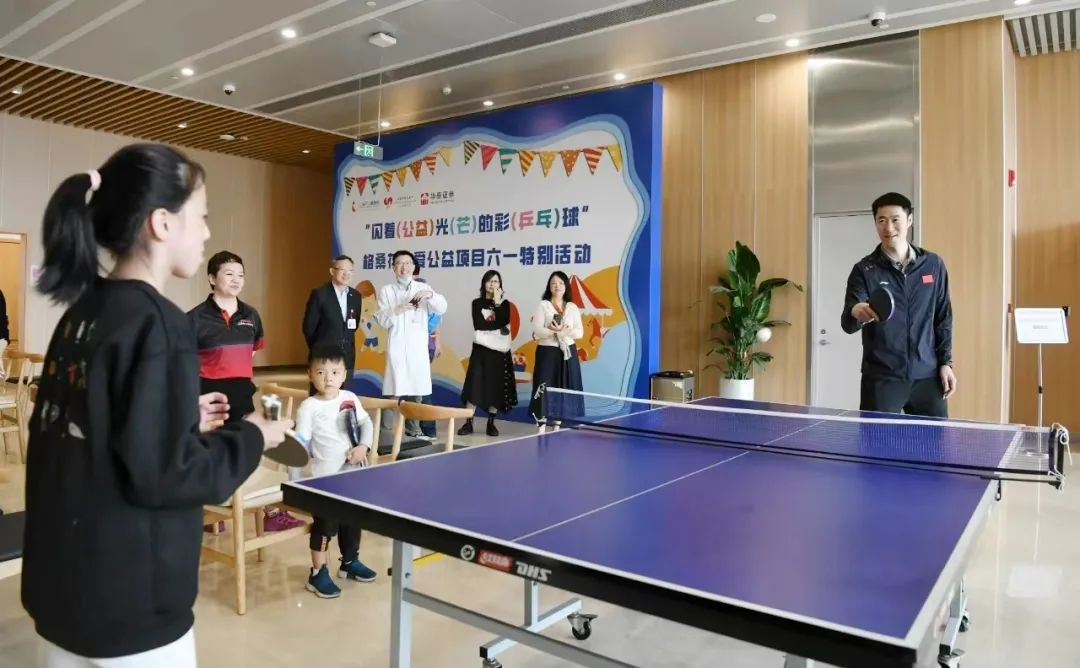 上海市儿童医院党委书记刘海峰为王励勤颁发了“格桑花之爱”项目“爱心公益大使”证书。王励勤向儿童医院捐赠了一批精心挑选的书籍。这些书籍将进一步充实医院的儿童读书角,丰富住院儿童的精神生活,开拓他们的知识视野。随后的乒乓球互动环节将整个活动气氛推向高潮。医二代和医院员工代表与王励勤展开了一场别开生面的乒乓球友谊赛。现场气氛紧张而欢乐。小选手们在赛场上表现出了极大的热情与专注,王励勤也展现了其“专业水准”。“小朋友,你的发球很有力量,要继续加油哦!”在互动中王励勤还不忘传授技巧,鼓励孩子们勇敢追梦。
