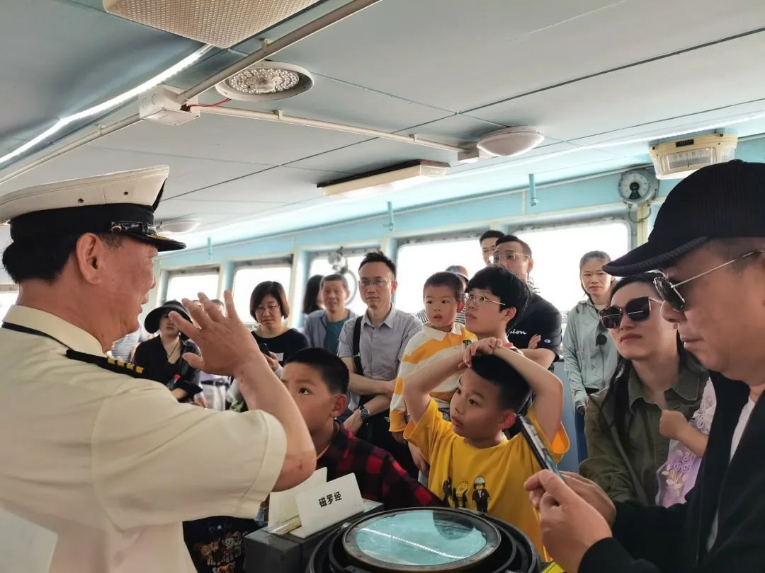大家逐一参观了飞行甲板、救生甲板、驾驶室等区域,不时驻足观看陈列的模型、历史照片和详实的文字资料,近距离接触船舱、航海设备、测控雷达、救生艇、锚机等设施,对我国航天远洋测控技术从无到有、由弱变强的艰辛历程有了更直观、更深入的了解。