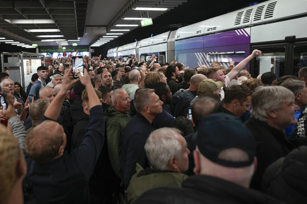 图说:德国火车站内拥挤的球迷