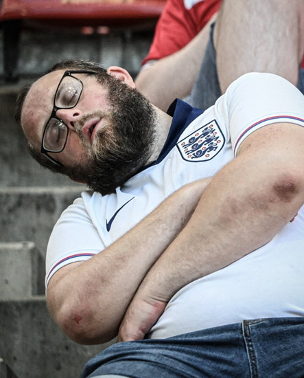 本届欧锦赛至今,英格兰队的表现有些让人失望,虽然获得小组第一,但乏善可陈的比赛内容,让不少花费重金来到现场为球队助威的球迷“破防”,他们中的一部分人,甚至在观众席上呼呼大睡,让目睹球队夺冠的愿望,在梦中率先实现。