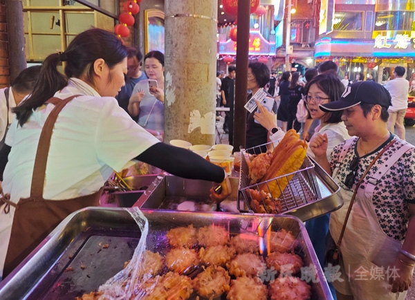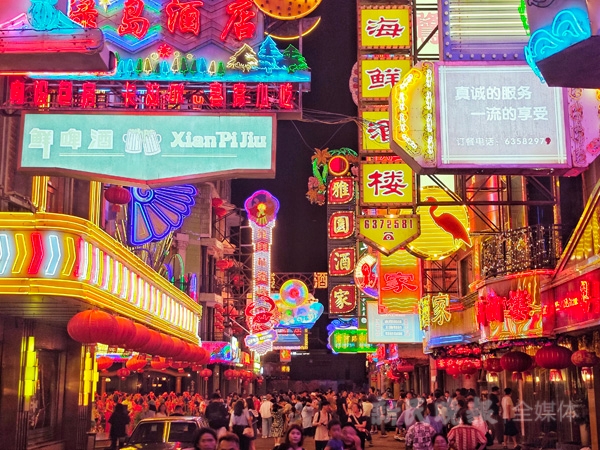 新民晚报讯(记者 曹博文)“五、四、三、二、一!”随着众人齐声倒数,漆黑的夜幕中,无数张霓虹灯牌在一瞬间将街巷染成彩色。一挂噼啪炸响的鞭炮伴着《我的未来不是梦》歌曲,将游客引入电视剧《繁花》中“黄河路”的烟火街巷深处……历经长达4个多月的复原工作,《繁花》拍摄地,位于松江区的上海影视乐园“黄河路”将于本周六(7月27日)晚首次正式对游客开放。昨晚,位于松江上海影视乐园的电视剧《繁花》黄河路拍摄地进行了“试亮灯”,新民晚报记者在现场提前体验了霓虹灯下的绚丽夜景。