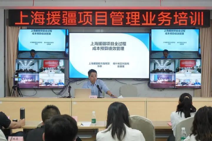 喀什地区财政局党组成员、副局长、上海前指项目资金业务组副组长华晔对上海援疆项目全过程成本预算绩效管理工作要求作培训。华晔结合自身经验与相关案例,对项目全生命周期中该如何实施事前绩效评估、绩效目标管理、绩效监控、绩效评价及成本预算绩效分析等工作进行了重点讲解,对上海援疆项目开展成本预算绩效管理工作提出了“结合当地实际加强制度设计、聚焦重点领域抓好关键环节、加强多方联动形成工作合力、强化成本管控务求工作实效”等具体工作建议。地区财政局绩效科进行了对应工作表式表样如何填报,以及如何在绩效管理信息系统中进行操作的培训。