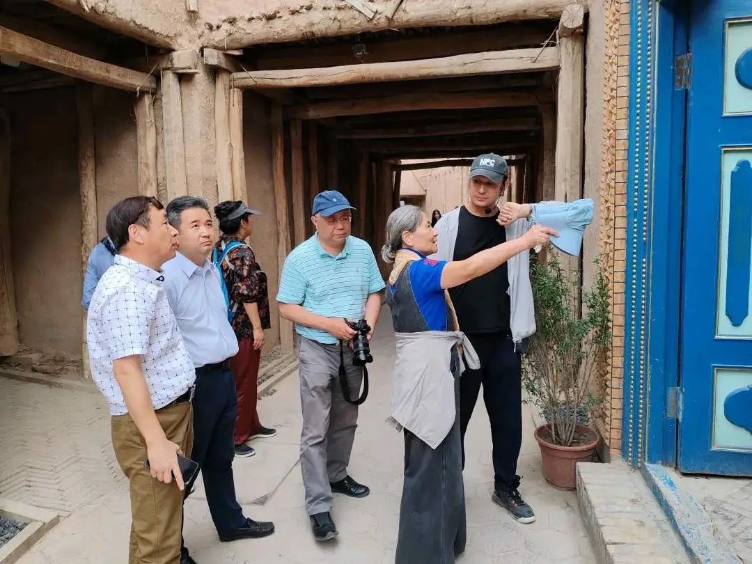 座谈会后,上海市长宁区文联一行前往高台民居调研,并在喀什市会展中心参观了喀什地区“丝路华章——庆祝中华人民共和国成立75周年”美术书法摄影民艺联展。