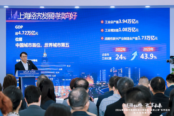 市投资促进服务中心主任王东从上海重点产业链、产业生态优势等方面分享发展机遇,他表示,首先,上海拥有一个强大而富有活力的经济系统,经济持续向好,要素资源高效配置,各类市场主体在上海蓬勃发展;其次,上海正全力打造现代化产业体系,是人工智能产业的高地,是引领时尚、定义潮流的“时尚之都”;最后,上海正在抓紧出台新一轮招商引资政策,为广大投资者创造更多的市场机遇、投资机遇、发展机遇。