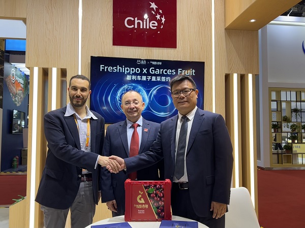 11月6日,在第七届进博会上,盒马与智利车厘子头部供应商GarcesFruit(吉制)签订战略合作协议,吉制将会向盒马供应质好价优的车厘子、樱桃李、西梅等智利水果。与此同时,盒马在智利的首个海外直采基地也正式落成。