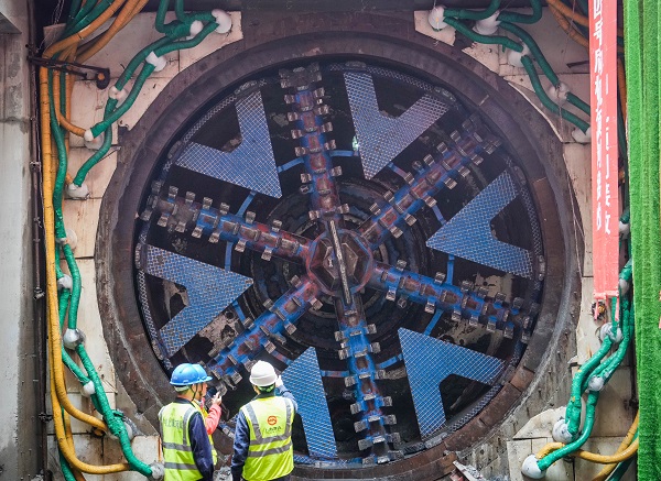 新民晚报讯(记者 任天宝)今天上午9时30分,随着盾构机刀盘缓缓转动,上海轨道交通18号线二期呼兰路站至爱辉路站区间上行线盾构机破土而出,该段区间盾构的顺利接收标志着18号线二期盾构区间全线贯通,为后续的轨道铺设、设备安装等工作奠定了基础。