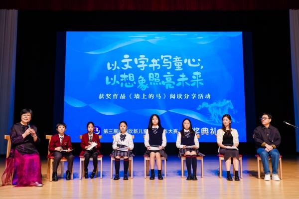 颁奖典礼特别邀请康德双语和浦东康德的三百多名师生共同参与,提前向同学发放了本届获奖作品《墙上的马》节选内容。在颁奖典礼现场,作者蓝钥匙与康德学校师生代表共同登上舞台,围绕“以文学书写童心,以想象照亮未来”开展主题阅读分享活动,让作家、作品真正走入读者中间。这部“集幻想与现实于一体”的作品以其飞扬的想象力打动了它的第一批小读者。来自康德学校的师生代表与作者展开交流,所思所想展现了新一代少年儿童的新风采。上海康德双语实验学校小学部中方校长蔡骏表示,阅读是可以陪伴孩子一生的好伙伴,此次“陈伯吹新儿童文学创作大赛”颁奖典礼在康德校园举办,展现了康德学子积极向学、热爱读书的精神面貌。
