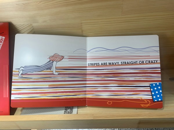 条纹、波尔卡圆点、方格、花格、千鸟格、马德拉格纹和鸟眼图案都是纺织品上的图案,它们将世界中的细微之处无限放大,插画家会在书的衬页中嵌入这些图案。在儿童图画故事中频繁运用的条纹,若追溯历史,它是水手服装的主要元素,更因条纹传递出的动态、不确定性、难以捉摸的特质而具有很强的叙事性。格纹与织物的共鸣又让画面变得生动活泼。