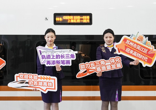 在首趟试运行列车值乘的上海客运段高铁四车队列车员王晓君是苏州市吴江区人,她成为“高姐”已四年,终于等到自己的家乡也要通高铁了,“我家在汾湖高新区(黎里镇)附近,以前到上海开车要一个多小时,到苏州市中心要坐车到同里再转地铁,现在沪苏湖高铁马上就要正式开通了,坐高铁从苏州南站到上海虹桥站,只要20分钟左右,太方便了!我有一个亲戚做服装生意的,今后也打算坐高铁在苏浙沪三地往来了。”