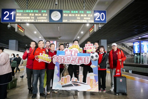 上海虹桥站为广大球迷提供团体包车享有的优先检票、专用通道、专区候车等候乘服务,温州南站优化出站流线和乘降组织,上铁文旅传媒公司协助球迷协会安排市内交通换乘、餐饮住宿、文旅咨询等服务,做好安全秩序事项提示,让球迷体验安心、省心、舒心的观赛之旅。