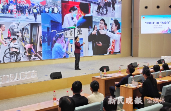 “生活总是突然给你一道考题,眼看天就要亮就要来不及……”来自中国商飞的青年用音乐剧唱出了加快建设大国重器,助力城市高质量发展的决心。作为地铁10号线运维管理部的一名站务员,殷悦在“城市第二空间”感受上海地铁的温度和上海城市的人情味儿。在她工作的“小窗口”外,还有国内首条全自动驾驶线路,在历史、当代与未来的连接中,见证着上海地铁从“可以出行”到“便利出行”。她说,她看到了一个大“视”界,而那,也是城市建设发展依靠谁、为了谁的正确答案。