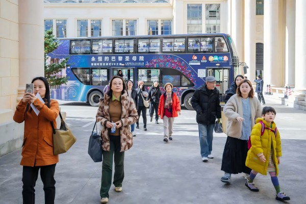 巴士的外部装点着玫瑰花窗,内部装饰融合中法两国特色元素。乘坐巴士,游客可以一边欣赏申城风光,一边聆听专业导赏。车上有几位乘客不禁发出感叹:“能在上海以这样的方式庆祝巴黎圣母院重新归来,值得一试。”